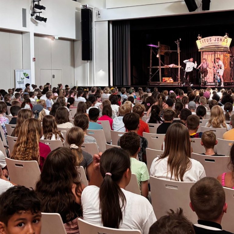 ...statt TV-Konserve. Wir fördern Kultur - gerade auch für Kinder und Jugendliche. Z.B. mit dem Gastspiel des Westfälischen Landestheaters und den "3 ???" im Juni 2025 im Bürgerhaus - vor 400 faszinierten Grundschul-kindern. Foto: Michalzik
