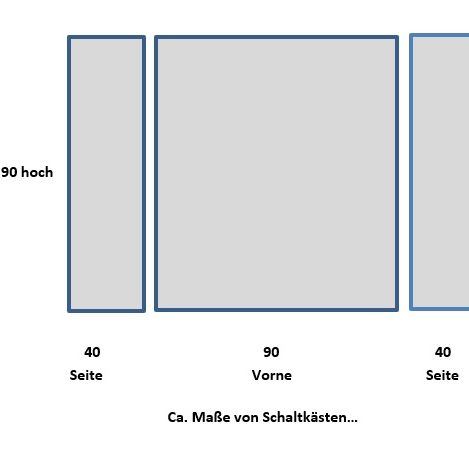 Ob selbst gemalt oder am PC gezeichnet, aus der Phantasie oder als Produkt kreativer Bildbearbeitung (Urheberrechte beachten!), ist Euch bei Euren Entwürfen selbst überlassen. Nicht alle Schaltkästen sind gleich. Die Grafik unten zeigt einen Standard. Bitte beachtet, dass ihr Euer Motiv so anlegt, dass es auch die schmalen Seiten eines Schaltkastens links und rechts der Front überdecken kann.